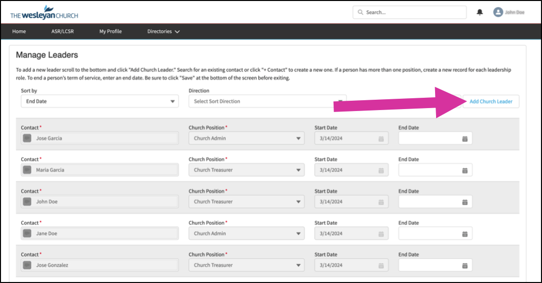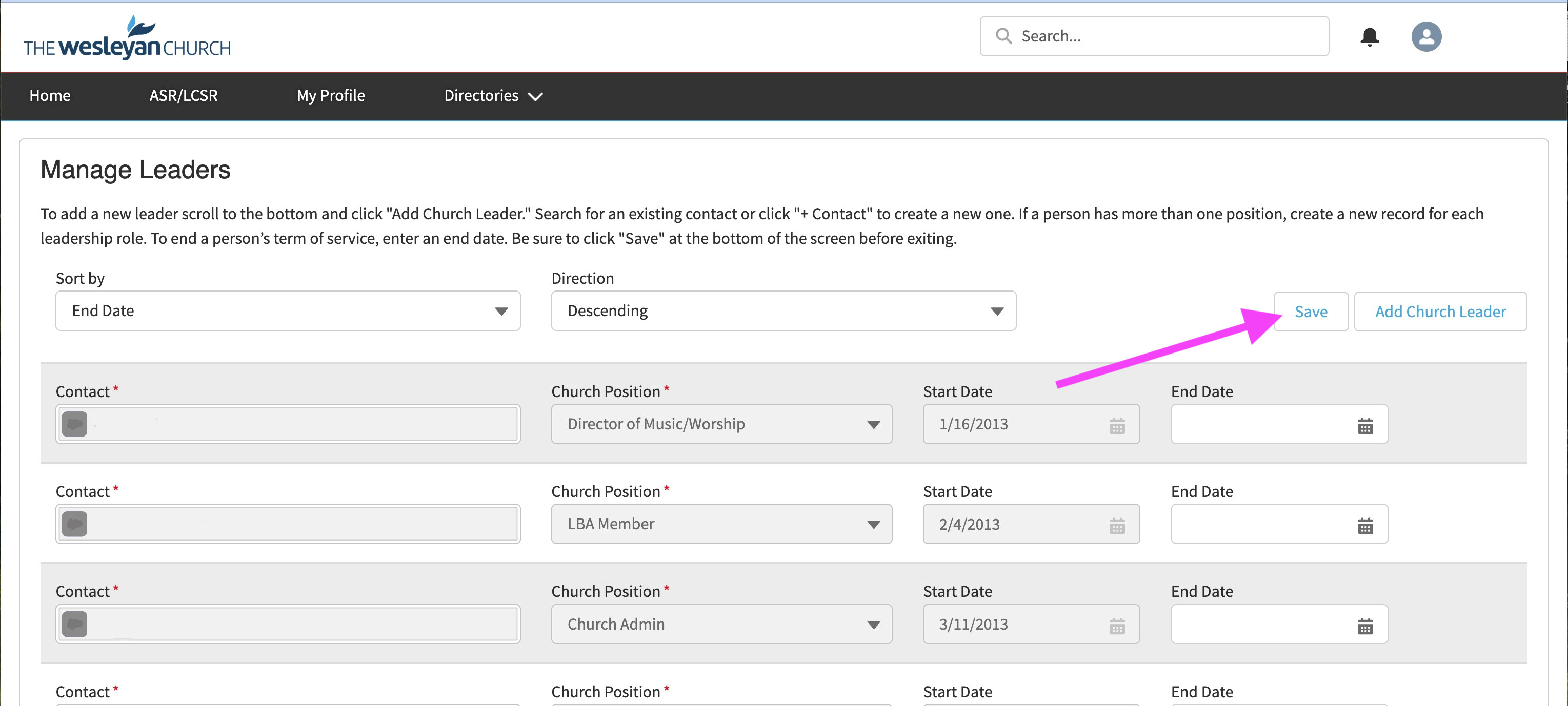 Repeat the steps above to add all church leaders.Save your changes.